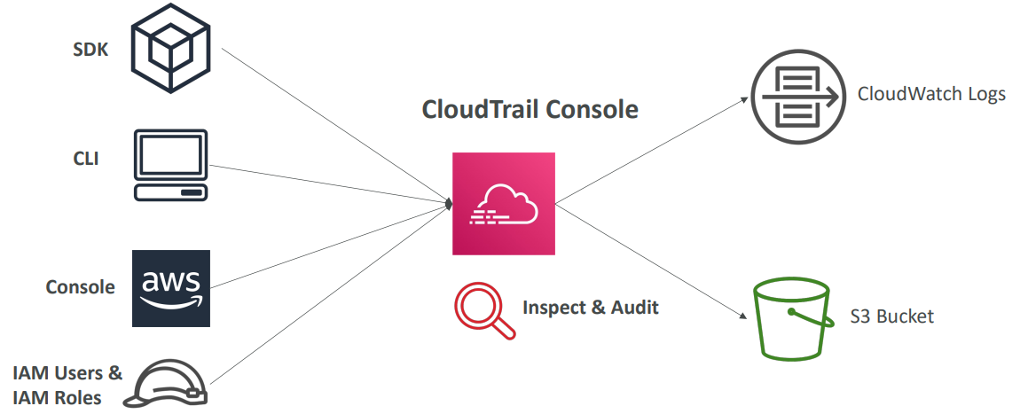 - CloudTrail의 로그를 CloudWatch Logs나 Amazon S3로 옮길 수 있음